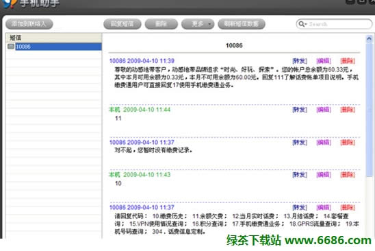 91手机助手iPhone版 短信管理:短信管理允许您备份还原您iPhone上的短信,也允许转发、修改、删除某条短信,并且您可以直接回复发信人,在界面上也提供将发信人增添到联络人快捷按钮。短信管理功能支持短信数据的导入导