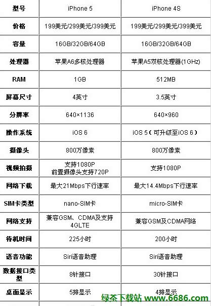 苹果iPhone5跟iPhone4S的区别(已确定)