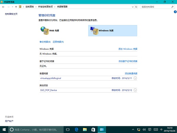 Windows 10是美国微软公司研发的跨平台及设备应用的操作系统。是微软发布的最后一个独立Windows版本。Windows 10共有7个发行版本,分别面向不同用户和设备。2014年10月1日,微软在旧金山召开新品发布会,对外展示了新一代Windows操作系统,将它命名为“Windows 10”,新系统的名称跳过了这个数字“9”。截止至2018年3月7日,Windows 10正式版已更新至秋季创意者10.0.16299.309版本,预览版已更新至春季创意者10.0.17120版本 从Windows 8开始,Windows系统引入了新的凭证管理器。在使用域名的网络账号上网过程中,系统后台会自动同步相关网络和本地内容,在浏览器中保存的网站登录内容也会被自动同步,而Windows凭据管理器就可以直接对这些数据进行管理。Windows凭据管理器既有方便之处,但也有隐患。 1. 凭据管理及其用法 如果你使用过带有域名的局域网系统,你一定会记得,在使用某些网络服务(如在使用网络打印机、公司文件服务器)的时候,第一次需要输入密码,而再次使用时就不需要密码了。这是因为系统的凭据管理器在后台发挥着作用。在第一次使用该网络服务的时候,通过凭据的方式将数据记录在凭据管理数据库当中,Windows系统和网络浏览器等应用程序可以安全地将凭据库中的凭据自动提供给其他计算机或网站。 小技巧:如何访问凭据管理器 右键单击Windows 10开始按钮,在弹窗的菜单中选择“控制面板”,将控制面板查看方式设置为“大图标”或“小图标”显示,在列表中就可以看到“凭据管理器”一项,点击即可启动该管理器(图1)。