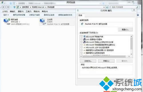 4、进去以后,点‘以太网右键属性’然后把那些勾全去掉; 5、然后点击确定;