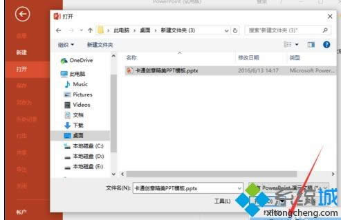 5、接着在“打开”对话框中,找到存放PPT演示文稿的目录,将PPT文件选中。