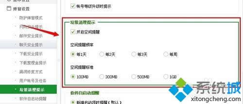 3、将“垃圾清理提示”设置里面的设置全部取消。