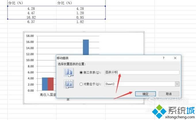 10、最后在插入的图表右击鼠标,选择移动图表,命名为图表分析,位于Sheet2。