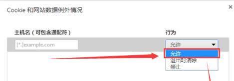 4、在“Cookie”下点击“允许设置本地数据”,然后点击下面的“管理例外情况”;