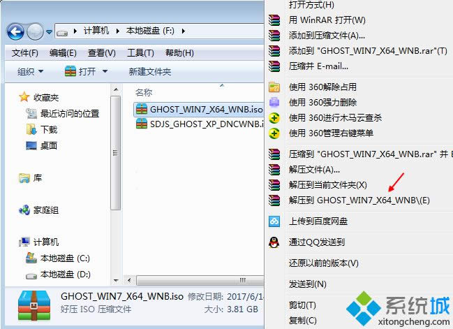 1、将ghost系统文件下载到C盘之外的分区,比如下载到F盘,右键使用WinRAR等工具解压到当前文件夹或指定文件夹,不能解压到C盘和桌面,否则无法安装;
