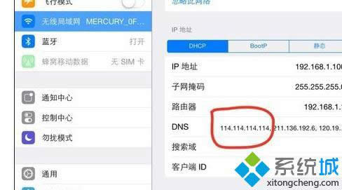 2、在DNS一栏有你们家的地址,在你们家的地址前输入“114.114.114.114”并以“,”结尾(注意:要用英文输入法哦。) 设置完后点击左上角的“无线局域网”回到初始界面(第一步的界面)。
