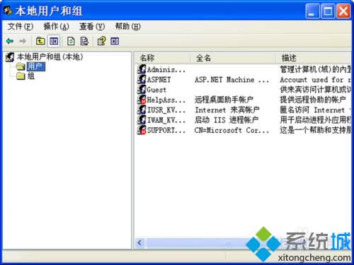 4、在右边的窗口中会显示所有的用户以及用户相关信息。