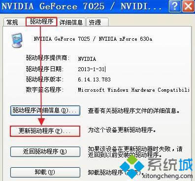 3、在弹出来的对话框中选择驱动程序选项卡,再单击更新驱动程序调出驱动更新向导。
