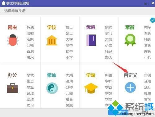 4、点击“编辑头衔”以后,我们找到最后的自定义,点击它。